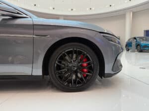 Thân xe BYD Han mang đến cảm giác trường xe nhờ kích thước lớn và các đường gân nổi chạy dọc thân xe, tạo sự khỏe khoắn và hiện đại. Bộ mâm hợp kim kích thước 19 inch với thiết kế 5 chấu kép hoặc hình chữ “Y” (tùy phiên bản) không chỉ tăng tính thẩm mỹ mà còn tối ưu hóa khí động học.