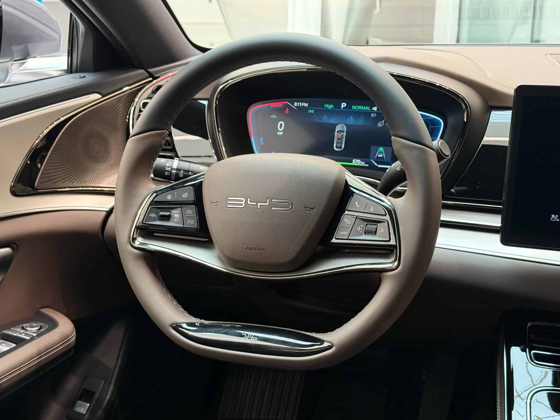 BYD Han sở hữu nội thất hiện đại với chất liệu da Nappa cao cấp kết hợp nhựa mềm, carbon, kim loại và các chi tiết mạ crôm tinh tế. Vô-lăng hai chấu bọc da với logo BYD cách điệu mang đến cảm giác mới mẻ và sang trọng. Bảng táp-lô được trang bị màn hình giải trí kích thước lớn 15,6 inch có khả năng xoay ngang hoặc dọc tùy ý. Cửa gió điều hòa dạng nấc thang độc đáo cùng táp-bi cửa bọc da vân quả trám góp phần nâng cao sự sang trọng cho nội thất.