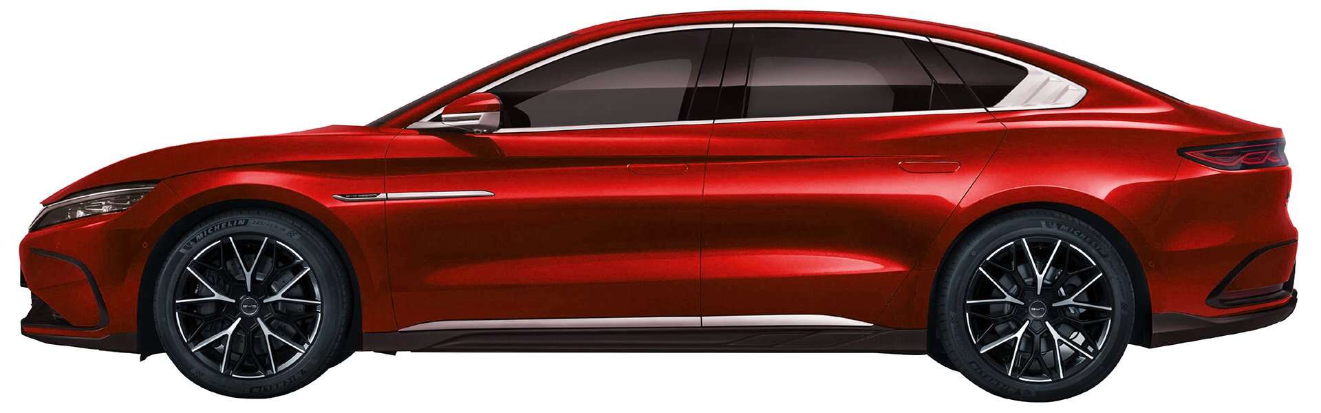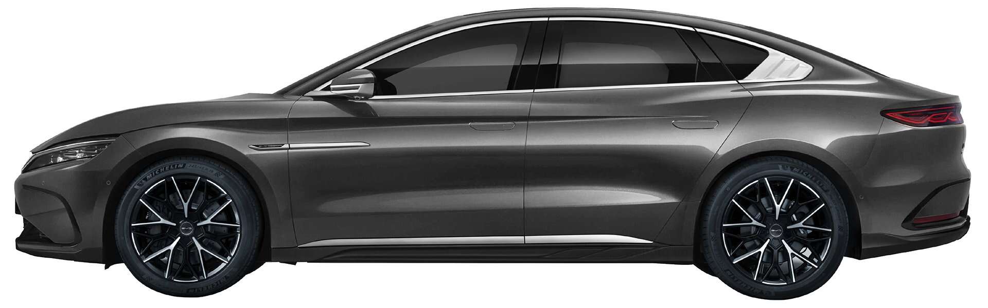 Thân xe BYD Han mang đến cảm giác trường xe nhờ kích thước lớn và các đường gân nổi chạy dọc thân xe, tạo sự khỏe khoắn và hiện đại. Bộ mâm hợp kim kích thước 19 inch với thiết kế 5 chấu kép hoặc hình chữ “Y” (tùy phiên bản) không chỉ tăng tính thẩm mỹ mà còn tối ưu hóa khí động học.